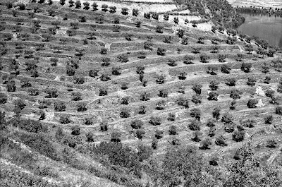 Esta foto é muito curiosa pois, pelo que percebo, mostra socalcos feitos para vinha, e que foram "reciclados" para oliveiras.